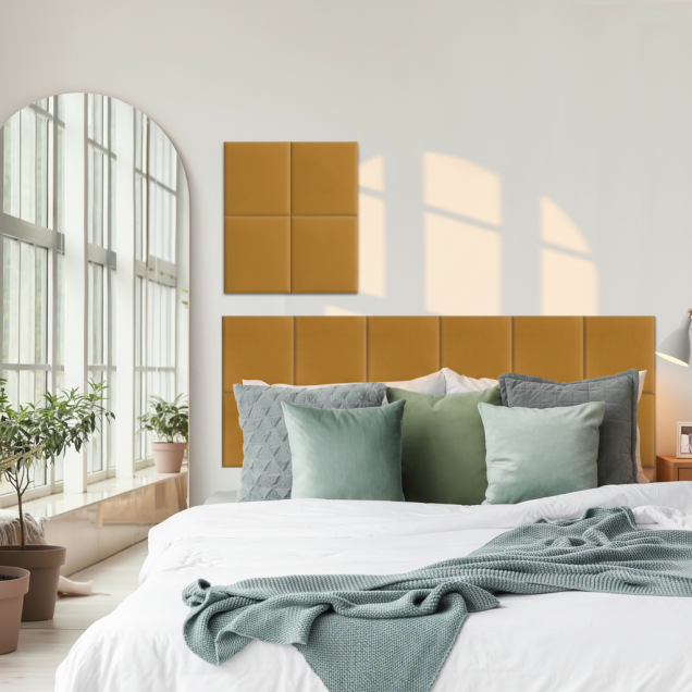 Panou tapițat catifelat, pătrat, galben, Simply Wall Panels Panou tapițat catifelat, pătrat, galben, Simply Wall Panels