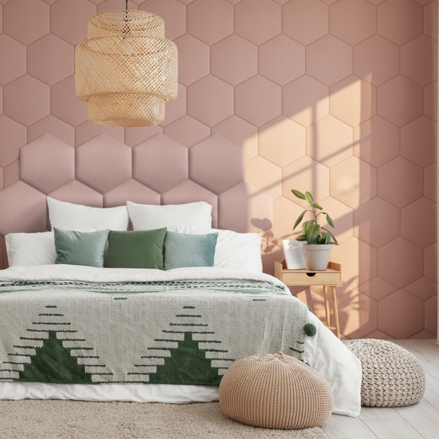 Panou tapițat hexagon catifelat, roz, Simply Wall Panels Panou tapițat hexagon catifelat, roz, Simply Wall Panels